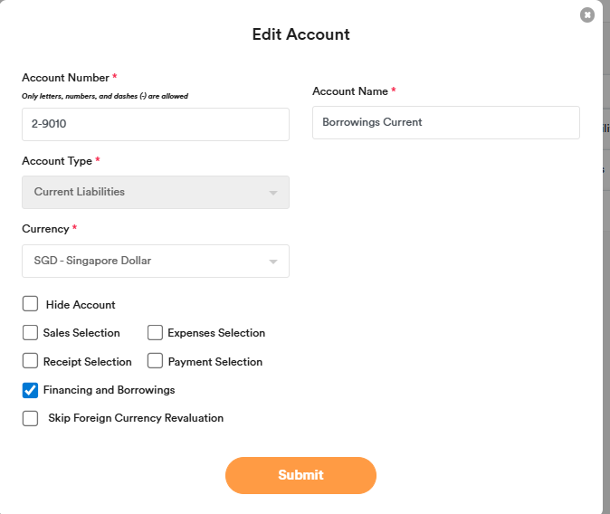 Chart of Accounts – Borrowings