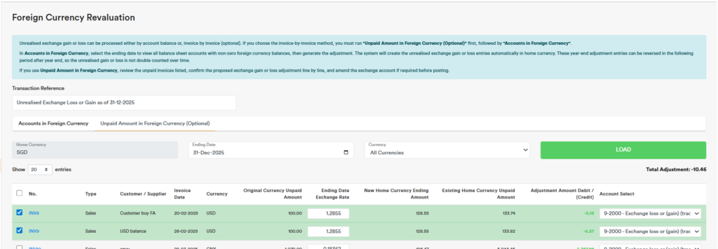Our system uses live market rates, updated automatically from these sources. This is a stronger and more defensible approach than using a single fixed “monthly rate,” which some companies apply for convenience. A fixed monthly rate can deviate significantly from actual market conditions during the month, leading to less accurate translation of transactions and unrealised gains or losses, and weakening the link to the spot rates required by IAS 21.